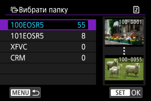 Автоматично створюється структура папок, яка відповідає структурі папок камери (наприклад, A/DCIM/100EOSR1), у кореневому каталозі сервера для зберігання зображень. Якщо ви створили в кореневому каталозі вкладену папку, змінивши параметр [Цільова папка], структура папок на кшталт A/DCIM/100EOSR1 автоматично створюється в цій вкладеній папці для зберігання зображень.