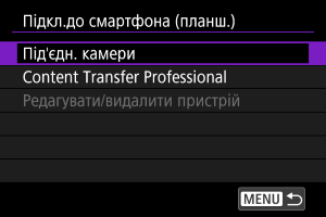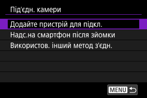 Якщо вибрано [Під'єдн. камери], виберіть [Використов. інший метод з'єдн.] на екрані [Під'єдн. камери].