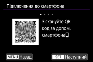 - Якщо програму Camera Connect не встановлено, відскануйте QR-код на екрані за допомогою смартфона, перейдіть у магазин Google Play або App Store, щоб установити Camera Connect, а потім натисніть кнопку