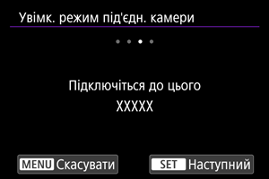 - Після завершення налаштування параметрів зв’язку на екрані камери з’явиться повідомлення із запитом на підключення зі смартфона.