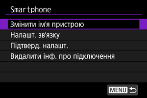 - Якщо на вашому смартфоні зберігаються дані про попередні сполучення з камерами, він не зможе встановити сполучення з цією камерою. Перш ніж виконати сполучення знову, видаліть дані про попередні сполучення з камерами на екрані параметрів Bluetooth вашого смартфона.