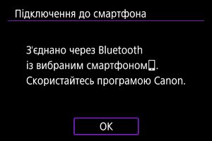 - Якщо камеру вже сполучено з іншим пристроєм, з’явиться повідомлення. Щоб завершити поточне підключення Bluetooth, виберіть [ОК].