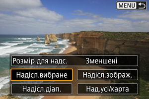 У меню [Розмір для надс.] можна вибрати розмір зображень, які потрібно надіслати.