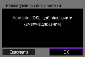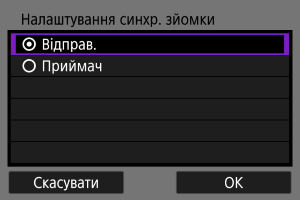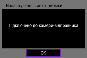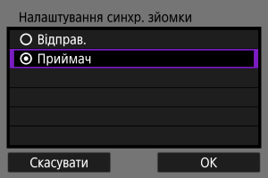 - Якщо вам більше не потрібно використовувати камеру-приймач під час зв’язаної зйомки, установіть для параметра [Синх.зйом.] у меню [Налашт. з’єднання] на цій камері значення [Роз'єднати].