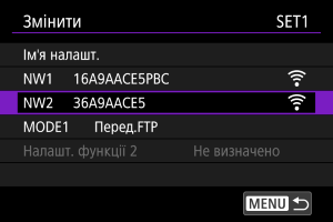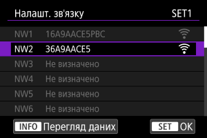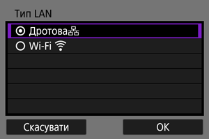 - Виберіть параметри Wi-Fi, якщо параметри дротової локальної мережі вже зареєстровано в пункті [Налашт. зв'язку 1], або виберіть параметри дротової локальної мережі, якщо параметри Wi-Fi вже зареєстровано в пункті [Налашт. зв'язку 1].