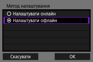 - Якщо вибрати [Налаштувати офлайн], камера залишатиметься від’єднаною від мережі після налаштування.