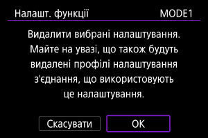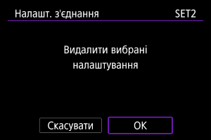 - Якщо вибрати пункт [Скинути вибране], параметри функції будуть стерті зареєстрованими параметрами підключення. На екрані підтвердження натисніть [ОК].