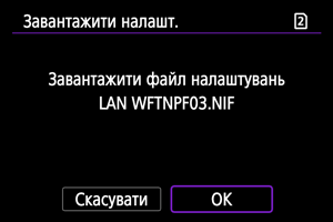 Параметри підключення можна зберегти на карту для використання з іншими камерами. Параметри підключення, що налаштовані на інших камерах, можна також застосувати на камері, якою будете користуватися.