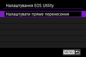 Вибір параметра [Налаштування EOS Utility] дає змогу налаштувати параметри прямого перенесення.