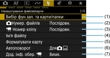 - (1) Вибір фун.зап. та карти/папки