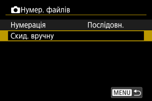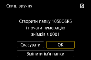 Коли виконується ручне скидання нумерації, автоматично створюється папка, у якій нумерація збережених зображень починається з 0001.