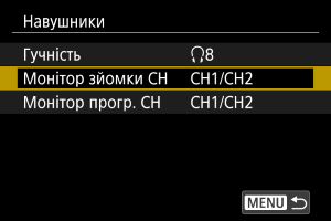 Виберіть [Монітор зйомки CH] або [Монітор прогр. CH].