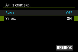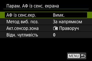 - Щоб вимкнути сенсорне керування, виберіть значення [Вимк.].