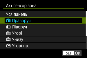 - У разі використання об’єктивів з перемикачем кільця фокусування / керування це меню не відображається. Налаштувати функції кільця фокусування / керування можна на самому об’єктиві.