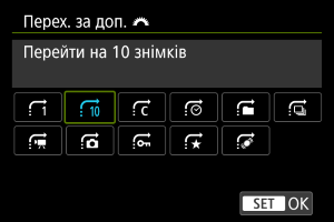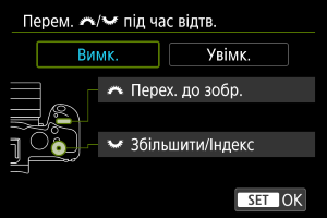 Щоб задати спосіб переходу між зображеннями на камері, можна повернути диск , одночасно натискаючи кнопку, якій призначено функцію [