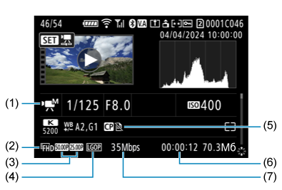 - (3) Кадрова частота (ліворуч: зйомка, праворуч: відтворення)