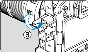- (6) Перемикач блокування кришки гнізда для карти пам’яті