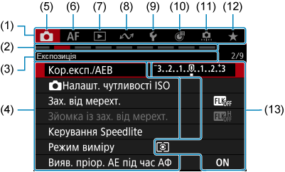 змінює основну вкладку (групу функцій). Перемикати екрани можна натисканням кнопки