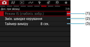 - Якщо до камери приєднано об’єктив із функцією стабілізації зображення (IS), пункт [