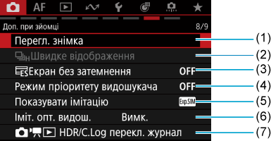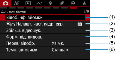 - (1) Відоб.інф. зйомки