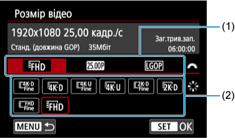 ], доступний довший час запису відео на карту такої ж місткості. Доступно, коли для параметра [
