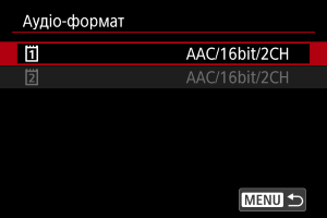 Можна вибрати формат аудіо, що використовуватиметься для запису звуку під час відеозйомки.