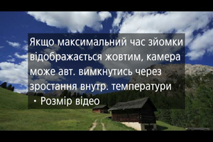 Вказівки попереджають, що запис відео за поточних параметрів може призвести до підвищення внутрішньої температури камери і в разі продовження запису камера може автоматично вимкнутися.