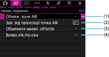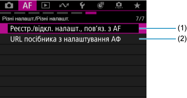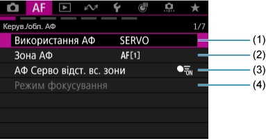 - Якщо використовується об’єктив без перемикача режимів фокусування, на вкладці [
