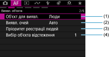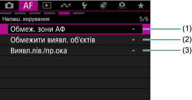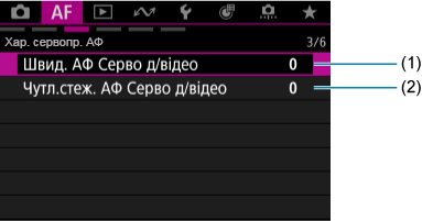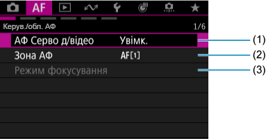 Меню вкладок: вкладка AF (відеозйомка)