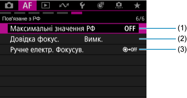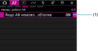 - Якщо використовується об’єктив без перемикача режимів фокусування, на вкладці [