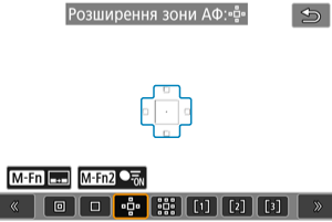 Можна вручну встановити точку АФ або рамку зони АФ. У цьому прикладі показано екрани гнучкого зонального АФ 1.