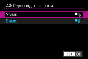 : АФ Серво відст. вс. зони] установлено значення [Вимк.], а для [