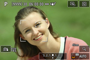Якщо натиснути кнопку затвора наполовину, [] відобразиться над точками АФ у фокусі.