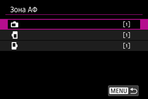 - Можна зареєструвати окремі початкові положення для кожної орієнтації камери, якщо для пов’язаного з точками АФ параметра () вибрано значення [Різні точки АФ: обл.+тчк.] або [Різні точки АФ: лише тчк.].
