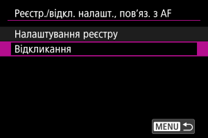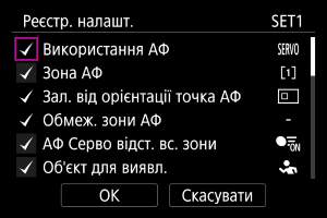 Виберіть налаштування АФ, які потрібно зареєструвати.