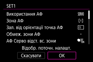 ]. Виберіть [ОК], щоб зареєструвати параметр. Докладніше про зони АФ див. в розділі Зона АФ.