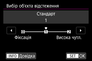 Можна налаштувати чутливість стеження (установивши один із семи рівнів), від якої залежить реагування в тих випадках, коли об’єкт рухається за межі точки АФ під час використання слідкуючого автофокусування для відеозйомки, як-от у випадку руху сторонніх об’єктів через точки АФ або в разі панорамування.