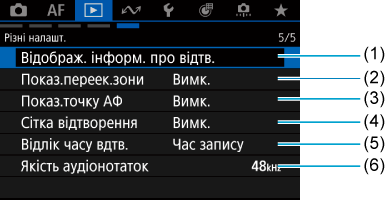 - (1) Відображ. інформ. про відтв.