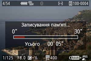 - Коли з’явиться вікно [Записування пам’яті...], не відпускайте кнопку й промовте в мікрофон (1). Максимальний час для кожного записування становить приблизно 30 с.