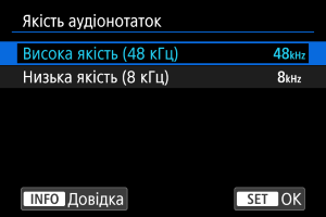 Для файлів голосових нотаток встановлюється менший розмір, ніж за параметра [Висока якість (48 кГц)].