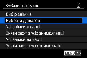 - Щоб скасувати захист, виберіть [Зняти зах-т з усіх знимк./папці] або [Зняти зах-т з усіх знимк./карт.].