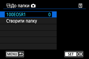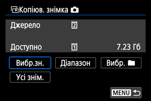 - Якщо вибрано параметр [Вибр.зн.], зображення в кількох папках не вдасться скопіювати одночасно. Виберіть зображення для копіювання з однієї папки за один раз.