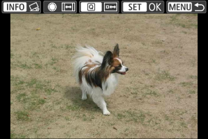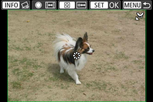 - Інформація про відображення точки АФ () і дані для усунення пилу () не додаватимуться до обрізаних зображень.
