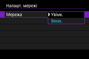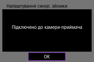 - Якщо вам більше не потрібно використовувати камеру-приймач під час зв’язаної зйомки, установіть для параметра [Синх.зйом.] у меню [Налашт. з’єднання] на цій камері значення [Роз'єднати].