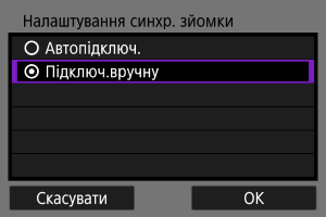 - Якщо вибрано [Підключ.вручну], можна зв’язати до дев’яти сумісних камер-приймачів.