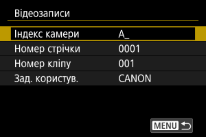 - За потреби призначте значення параметрів [Номер стрічки] й [Номер кліпу].
