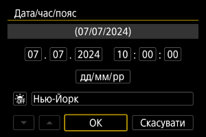 Під час першого вмикання камери, а також у разі скидання параметрів дати/часу/часового поясу виконайте наведені нижче дії, щоб передусім задати часовий пояс.