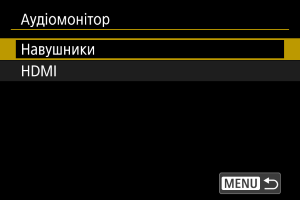 Можна вибрати комбінацію каналів для виводу через роз’єм для підключення навушників під час зйомки або відтворення. Цей параметр також застосовується для виводу через динамік ().