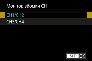 Виберіть [Монітор зйомки CH] або [Монітор прогр. CH].