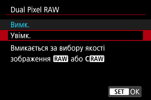 - Буде знято зображення у форматі RAW з даними Dual Pixel (зображення Dual Pixel RAW).